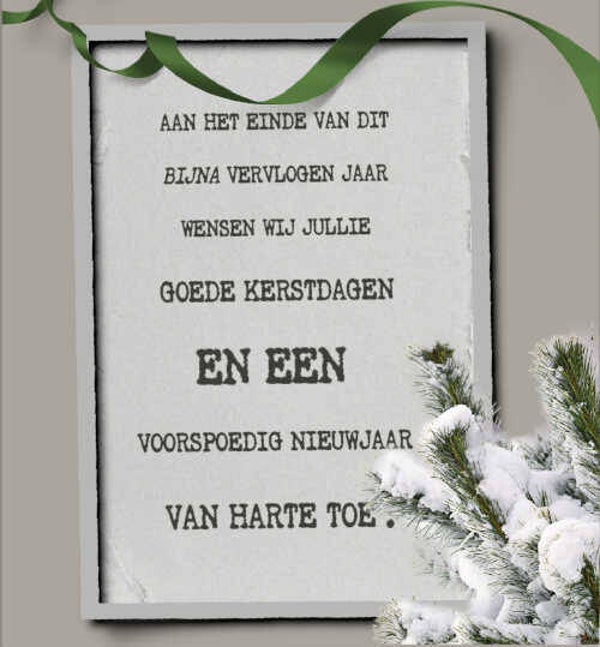 Pakje (5 stuks) kerstkaarten met tekst: Aan het einde van dit bijna vervlogen jaar wensen wij jullie (je) goede kerstdagen en een voorspoedig nieuwjaar toe.