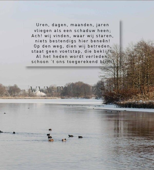 Pakje (5 stuks) kerstkaarten met tekst: Uren dagen maanden jaren. Vliegen als een schaduw heen....