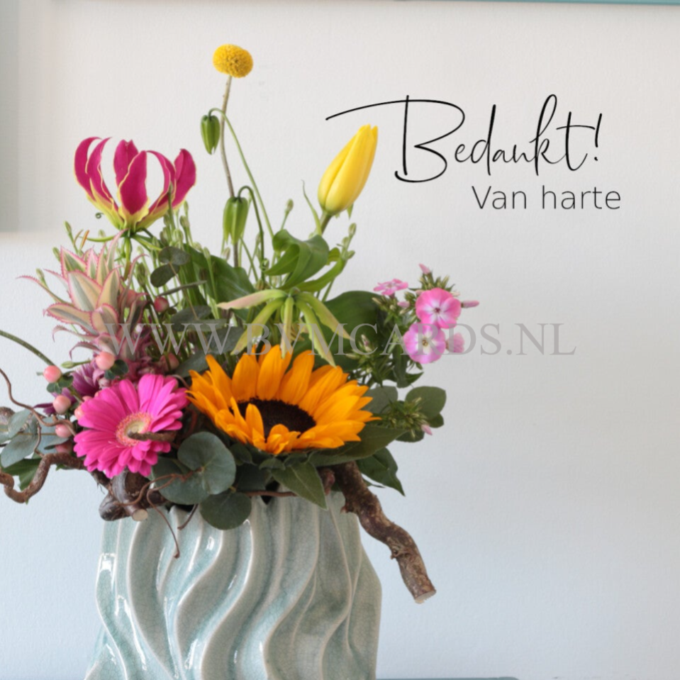 Dubbele kaart | Bedankt | Boeket | Formaat 11x11 | inclusief bruine envelop.